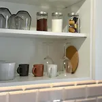 Origins III Modern Seaside Studio In Piso Livadiは台所が備わっており、そこで自炊することができます。